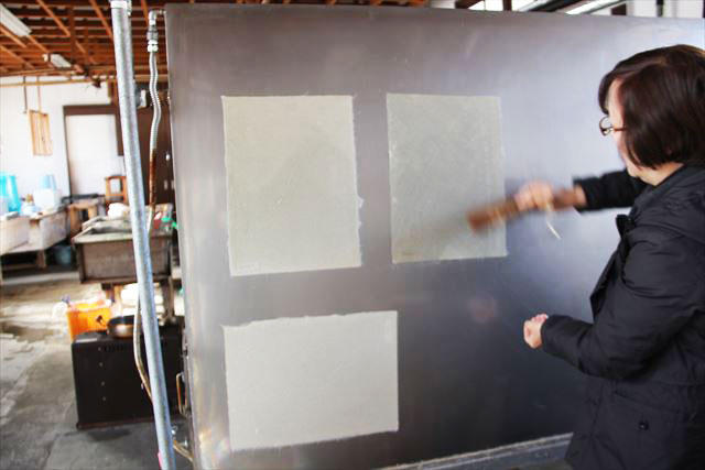 今度は紙を乾燥板に張り付けて乾燥させていきます。