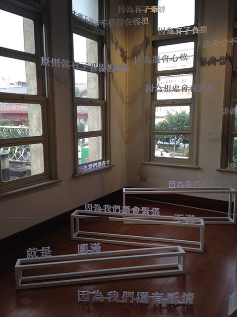 木枠の窓が特徴的な二階にも素敵な展示が施され、アクリル板にプリントされた写真が、この歴史的建築物と調和しています。台湾と日本の、良いところが溶け合った展示だと思いました。