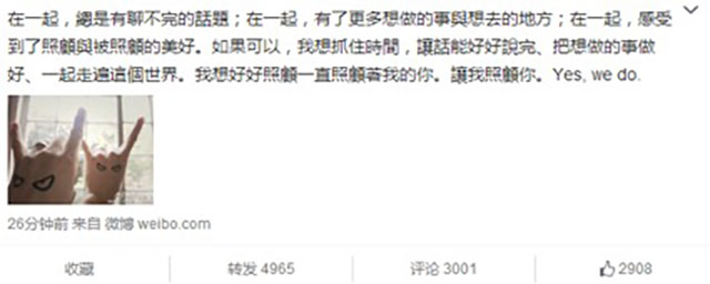 現在中華圏も「結婚ラッシュ」に入っているようで、先週ヴィック・チョウの結婚宣言で衝撃を受けた中国のファンは、まさかの「Wショック」となっており、悲鳴の声が上がっています。