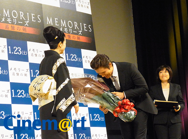 ここで、イ・ビョンホンさんのファンという歌手の坂本冬美さんが、このジャパンプレミアを祝うため真っ赤なバラの花束を持って登場。