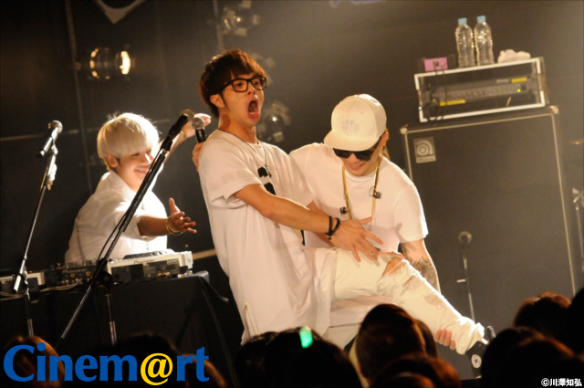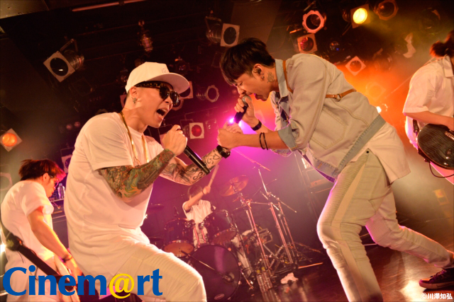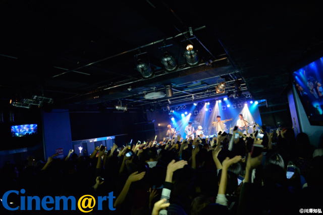 ステージ左からDJのグーグー、ベースのカイカイ、ツインボーカルのティンティンとガーガー、ギターのレイボウがほぼ一直線に並び、後方にドラムのアシャンという布陣で、白い衣装に身を包んだメンバーが姿を現すと、彼らの日本デビューを待ち望んでいたファンからワッと歓声が上がる。