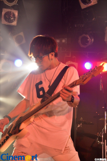 5曲目はミディアムに始まる〈TRAPPED BY FELLING/感覺犯〉。しかしガーガーの「Ready?One、Two」の声で再びテンションを上げる。「みんないくぞ!」の掛け声でタオルグルグルと「Wow~」の大合唱。カイカイがベースを弾きながらクルクル廻り、グーグーもタオルを持った腕を突き上げる。6曲目は〈TRAPEZE/空中飛人〉。これもタオルポイント。カイカイとレイボウが大きく手を挙げ、ドラムのアシャンが立ち上がる。爽快なイントロから再び「Wow~」の大合唱。間奏ではレイボウが中央にきてソロ。カイカイも上手に移動しピョンピョンと飛び跳ねている。