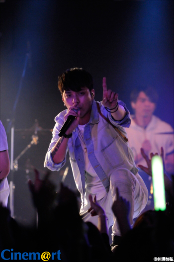 「次の曲は僕たち6人にとってとても意味がある曲。この曲で多くの人に僕たちのことを知ってもらました。皆さんに良いパワーをあげられると信じています。ティンティンの歌詞もすごく良いので、中国語が分かる人は訳して欲しい。でもみんなの中国は僕より上手いけどね。これからも東京や大阪、日本の色々なところに行きたいです。OK? じゃあみんなも一緒に歌ってください!」