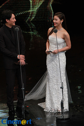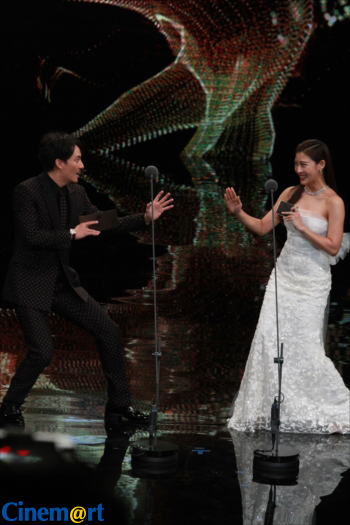 続いてプレゼンターの郭富城(アーロン・クォック)と林嘉欣(カリーナ・ラム)が登場!