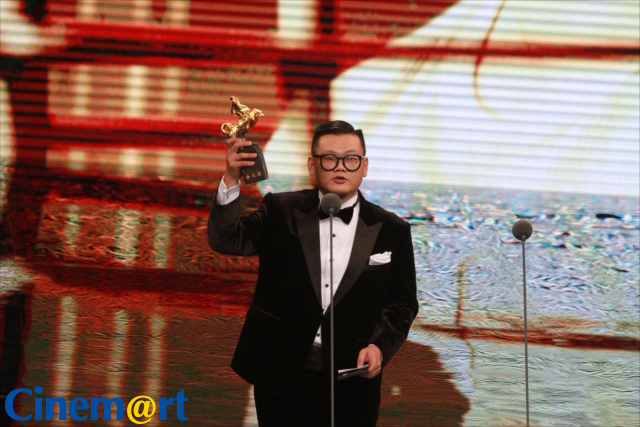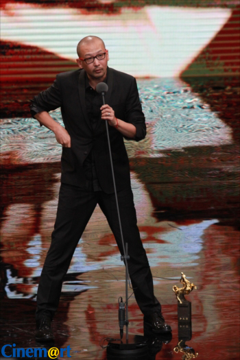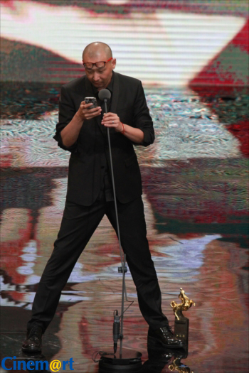 続いて登場したのが、昨年の金馬奨で、『一個勺子』にて最優秀新人監督賞のみならず最優秀主演男優賞まで獲得し、さらに『軍中楽園』で最優秀助演男優賞までかっさらって行った陳建斌(チェン・ジェンビン)。最優秀新人監督賞を発表しました。
