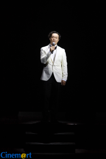 『インファナル・アフェア』の〈被遺忘的時光〉や、王菲(フェイ・ウォン)が歌う『恋する惑星』の主題歌〈夢中人〉、イーソンとフェイのデュエット曲〈因為愛情〉に始まり、『花樣年華』『花蓮の夏』『誰かがあなたを愛してる』『あの頃、君を追いかけた』などが続き、最後に『君さえいれば』の張国栄(レスリー・チャン)と袁詠儀(アニタ・ユン)の画像がスクリーンに映し出されました。そう、あの〈追〉をふたりが歌ってくれたのです! 誰もが固唾を飲んで聴き入っています。この不意打ちに思わず涙が...。続くラストナンバーもレスリー。『さらば、わが愛/覇王別姫』の主題歌〈當愛巳成往事〉が歌われました。演奏が終わるとレイニーとイーソンが手を取り合い、ほっとした笑顔を見せていました。テレビでは流れませんでしたが、レイニーは「無事に終わってよかった」という表情でイーソンの方にうなだれるようにして、イーソンに支えられながら舞台を後にしました。余程重圧だったのでしょうか。とっても素敵でした!