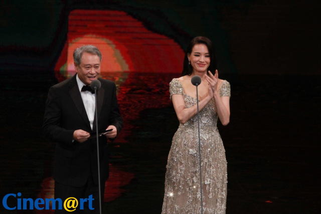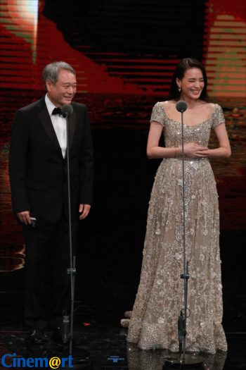 プレゼンターに李安(アン・リー)と舒淇(スー・チー)が登場。スー・チーとチーリンのスケスケドレスと背の高さにいちゃもんをつける監督。ここからのやり取りもなかなか面白かった。