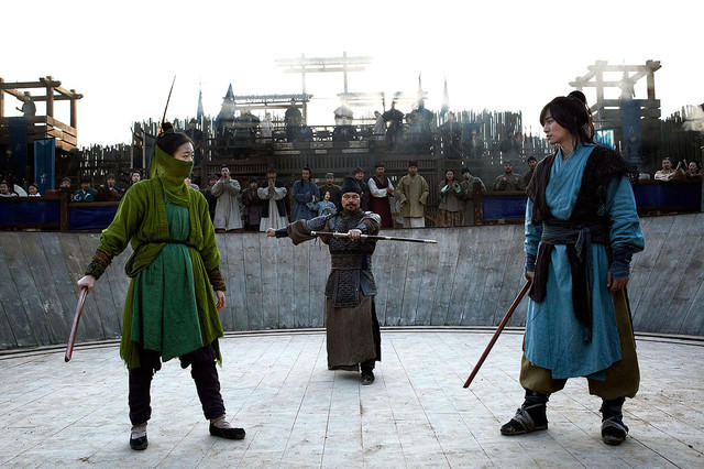 貧しい出身でありながら巧みな剣術と才知で権力者にのし上がった男ユベクに、『王になった男』以来4年ぶりに韓国映画に復帰したイ・ビョンホン。圧倒的にスター然としながらも、そのフィルモグラフィを見れば、ヒロイックな役柄よりも一癖ある役柄や作品を選んできたようにも思えます。今回もまた然り。悪役です。野心の下に本心を隠し、復讐のために向かってきた少女と剣を交えます。ご本人は東洋の剣術に苦労したと語っていますが、ノースタントで華麗なワイヤーアクションを披露しています。
