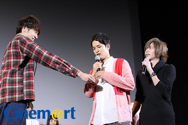 「今だからいえること」というお題に中村さんからは、染谷さんからメールで"優一"と呼び捨てにされキュンキュンしたといったエピソードや、みんながロケバスでも大盛り上がりで、年上としては体力的に辛かったといった笑い話が。そして石渡さんからは、舞台の時に染谷さんから毎回プレッシャーをかけられたというエピソードが語られました。