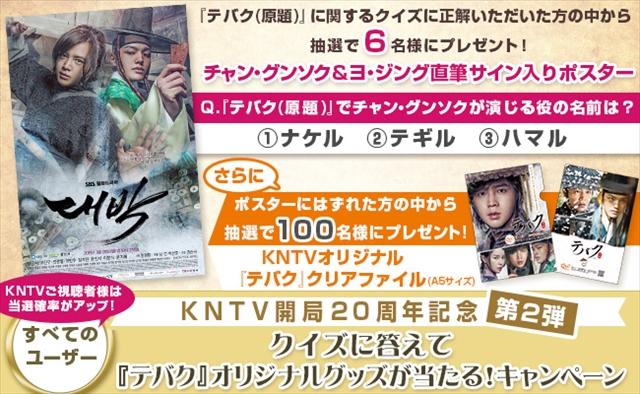 【韓国エンタメ】開局20周年 記念クイズに答えて『テバク』オリジナルグ ッズが当たる!