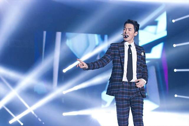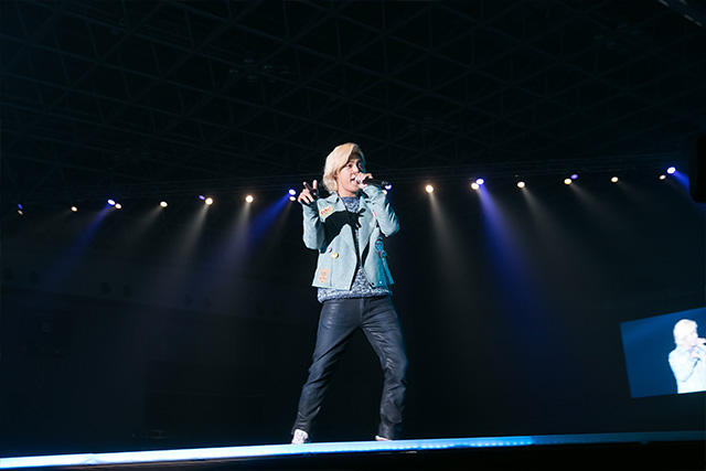 爽快感のある応援ソングを、会場中に届けるように体全体を使って熱唱するKangNam。