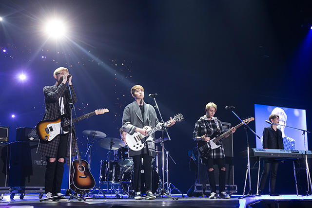 2曲目はデビュー曲の〈Congratulations〉。リーダーのソンジンはエレキからアコギにチェンジ。こちらも清々しくて温かみのある曲調の切ないラブソングです。「全員がボーカルをとれることが個性」と語っていましたが、それぞれにボーカルを務めるパートがあり、それぞれに上手いというのは確かに魅力的ですね。