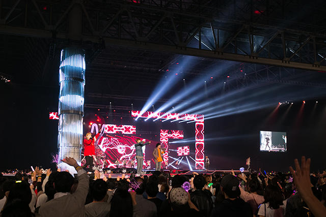 「今日0:00に、新しいアルバムが発売になります」「1年7か月、長い間待っていてくれてありがとう」「新しい曲、この舞台で初めてやります!」「準備はいいですか~」