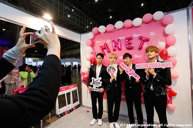 続きまして、コンベンションエリアの協賛ブースを訪問されたアーティストの皆さんをお写真でご紹介いたします! K-POPスタートともに、ファンも大移動! こんなに近くで触れ合えるなんて貴重です!