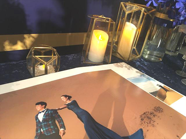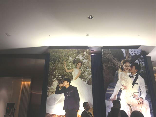まず披露宴会場で招待客を迎え入れてくれたのは、天井から床まである巨大な写真。