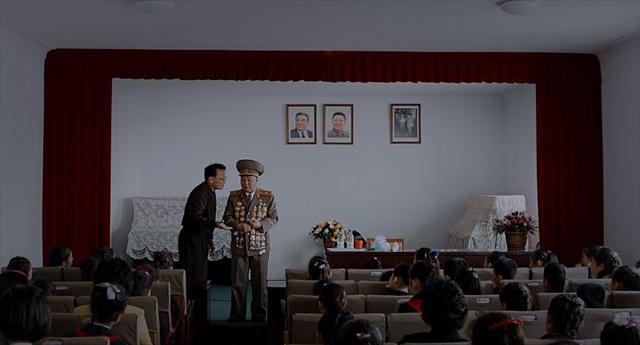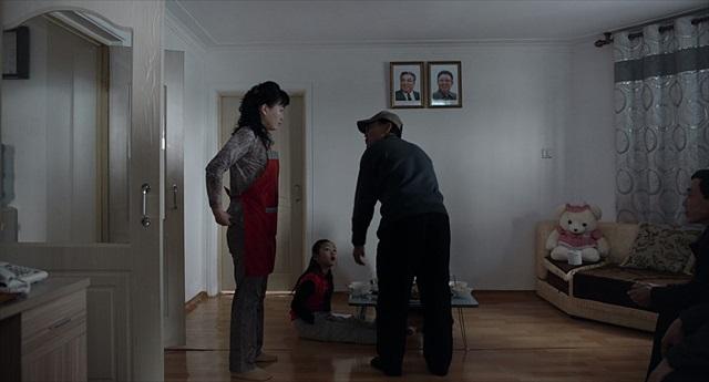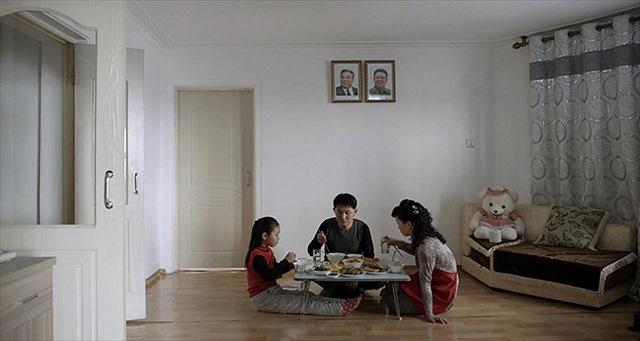 家族の食事の風景に始まり、学校の授業の風景、家族の両親の仕事の様子など、政府から正式にカメラに収めて良いと言われているのは全て演出仕込み。台本ありの。ドキュメンタリーなのに話の展開も政府が決めていて、「ジンミの友人がケガするが、入院して高度な治療を受けて直る」とか強引な展開含め全て展開が決められていて、おじさんがいちいち演出に入る(演出は割と優しい)。場所も人も出来事も。「ドキュメンタリー撮らせてくれるって言われたのに、全然違うね!」と監督が怒るのも納得です。