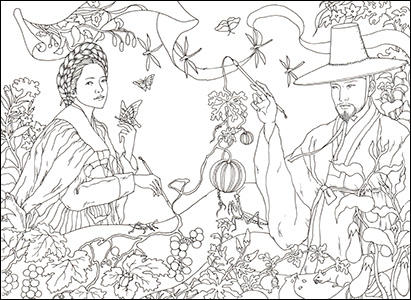 皆さんもぜひこの塗り絵に自分だけの"色"を塗って、「師任堂(サイムダン)、色の日記」の世界を作ってみましょう!