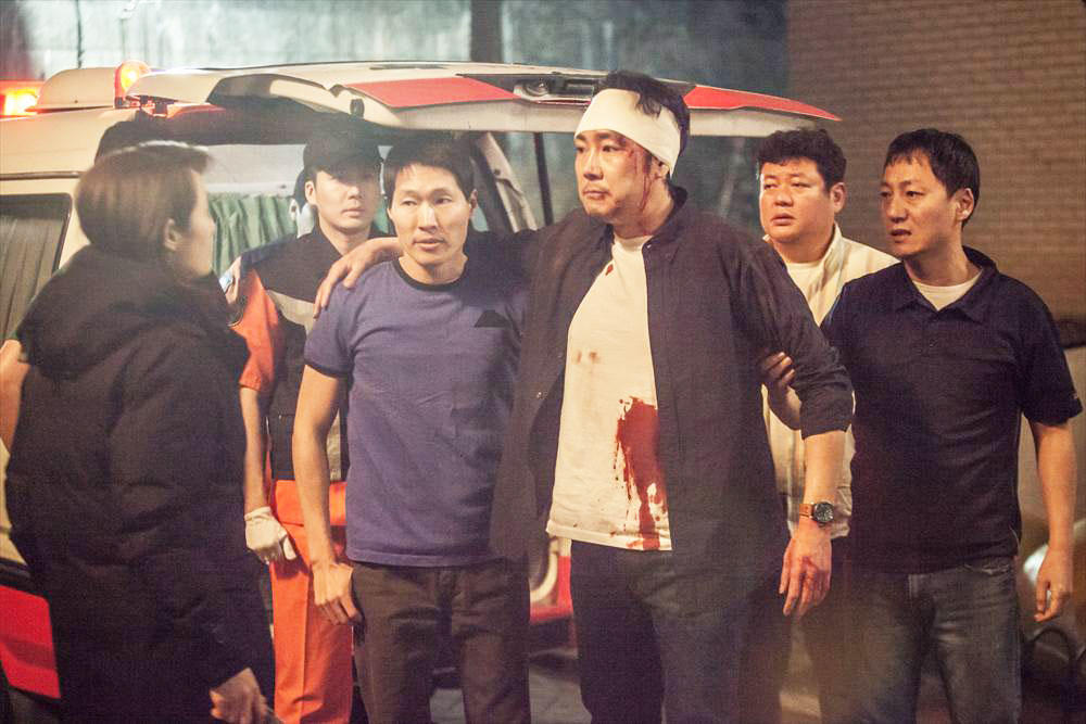 チョ・ジヌンさん演じるジェハンが捜査中に刺されてしまい、救急車で運ばれる、というシーンです。