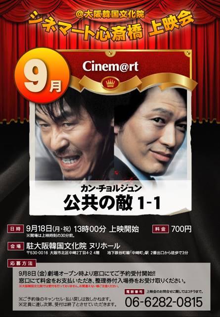 9/18(月・祝)、大阪韓国文化院にて、『カン・チョルジュン 公共の敵1-1』の上映が決定しました!
