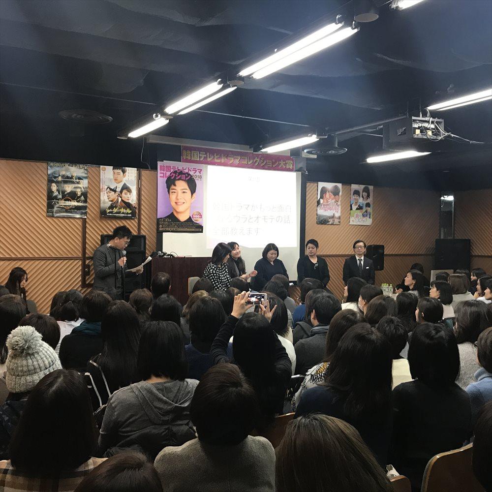司会は、韓流ファンにはお馴染み古家正亨さん。登壇者は、ドラマの配給会社からポニーキャニオン、コンテンツセブン、エスピーオーが、放送局からはデジタルアドベンチャー(DATV&KNTV)、CJ E&M Japan(Mnet)の社員の方々が参加されました。