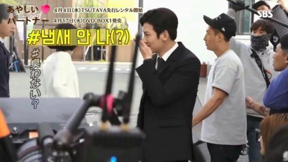 撮影後は、なでなでしていた手の平を、ナム・ジヒョンに嗅がせ、自分でも臭いを確認するチ・チャンウクがお茶目だ。