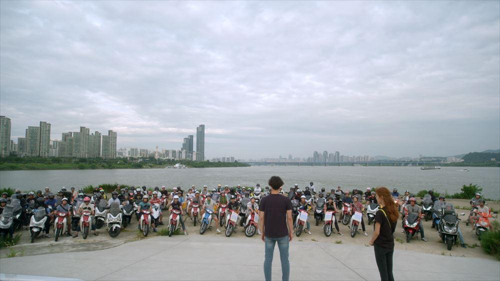 配達人仲間のヒョンスの祖母のお店の窮地を何とかしようと、自分の仕事の合間にビラ配りから配達まで手伝うガンス。