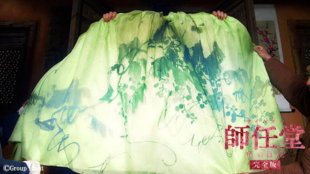 サイムダンが描いた墨葡萄。これは実際の有名なエピソードで、宴の席で借り物のチマを汚してしまった女性のために描いた墨葡萄は人々の絶賛を浴びました。
