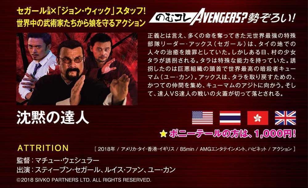 ― 香港映画ですね。「のむコレ」はアジア映画も多いですけど、様々な国の作品が上映されますよね。チラシにも国旗が作品解説のところに入っていて、パッと見たときにワールドワイドな作品が集まっているんだ、と感じられました。スティーブン・セガールの『沈黙の達人』では4つ国旗が並んでて(笑)。