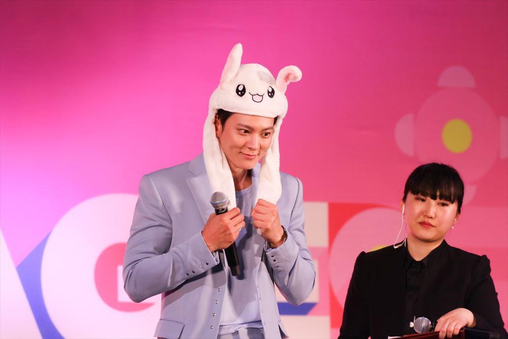 早い曲調に併せて、「オッパ」の時は両耳、「カンナム」の時は右耳、「スタイル」の時は左耳を上げるのだが、思わずチュウォンも「(日本語で)むずかしい...」とぽつり。だが、いざ挑戦してみると持ち前の運動センスで、さらっと踊れてしまうチュウォン(笑)。本人も「意外と簡単でした」と笑顔。またウサ耳帽をぴょこぴょこさせる様子の可愛らしさに、客席からは歓声があがった。