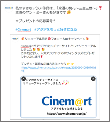 4)ハッシュタグ「#Cinemart」「#アジアをもっと好きになる」をつけてツイートし、応募完了!