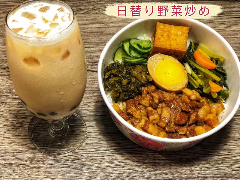ル―ロー飯、 揚げ豆腐・煮玉子入り+タピオカミルクティー付