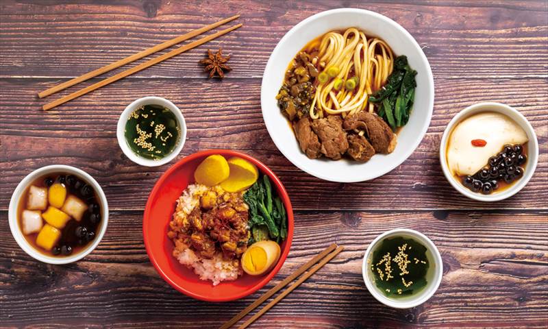 台湾甜商店ではフードメニューを新たに関西地区の4店舗、関東地区の1店舗にて販売を開始する。販売するのはルーローハンや牛肉麺などの人気メニュー。台湾食文化にこだわりのある台湾人チームが現地の伝統的な味を再現し考案したメニューだ。また、ボリューム満点のセットメニューには、選べるミニスイーツと週替わり台湾茶が付き、台湾情緒たっぷりの店内で、ゆっくりと台湾時間をお楽しむことができる。