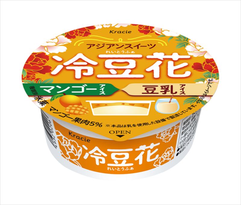 アジアンスイーツ「豆花(とうふぁ)」をモチーフにしたアイス「冷豆花(れいとうふぁ)マンゴー」(140ml/160円)が全国のスーパーマーケット、ドラッグストア、コンビニエンスストアなど発売中。