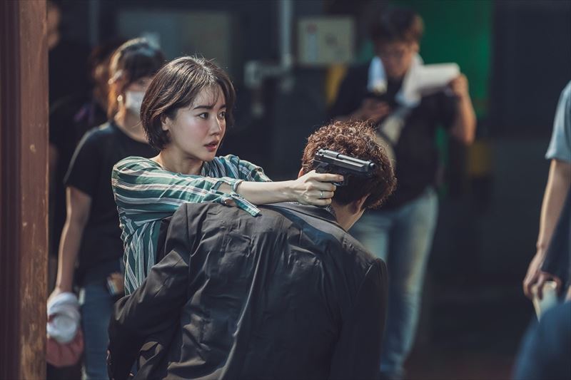 本作にはステイホーム中に爆発的人気ドラマとなった韓国ドラマ「愛の不時着」にチェ・デフン演じるユン・セジュンの妻・ミナを演じたファンウ・スルへが出演。ワイヤー・アクションに挑戦しているシーンを中心とした場面写真3点が初解禁となった。
