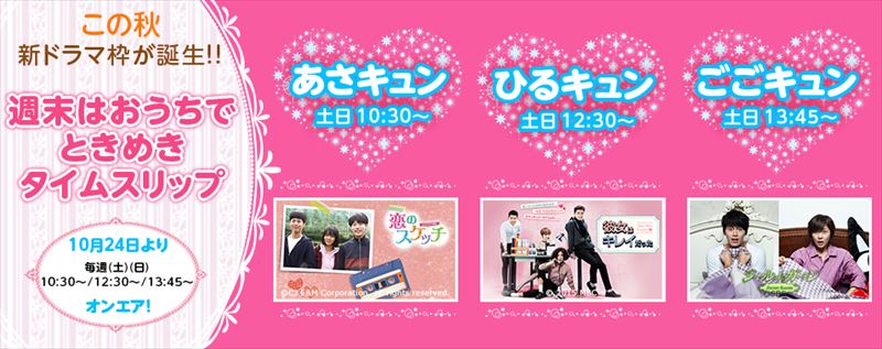 放送時間は毎週土日の 10:30~、12:30~、13:45~。3つの時間にときめきが止まらない胸キ ュン3作品をオンエア。 第1弾のあさキュン(土日 10:30~)「恋のスケッチ~応答せよ 1988~」、 第2弾の ひるキュン(土日 12:30~)「彼女はキレイだった」につづき、 第3弾のごごキュン(土日 13:45~)はヒョンビン &ハ・ジウォン主演のファンタジーラブストーリー「シークレット・ガーデン」に決定。