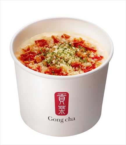 鶏のだしでお米がとろとろになるまでじっくりと煮込み、 生姜の香りをアクセントにした中華風のお粥に、 トマトソースと鶏そぼろを合わせ、 粉チーズ、 パセリをトッピングした、 トマトの酸味を感じるさっぱりとした味わいのお粥。 洋風な印象のトマト粥を、 葱生姜醤(ねぎしょうがじゃん)を効かせることでゴンチャらしくアジア風にアレンジしました。
