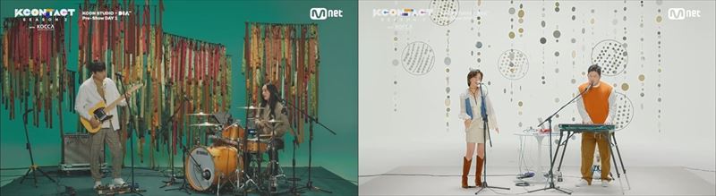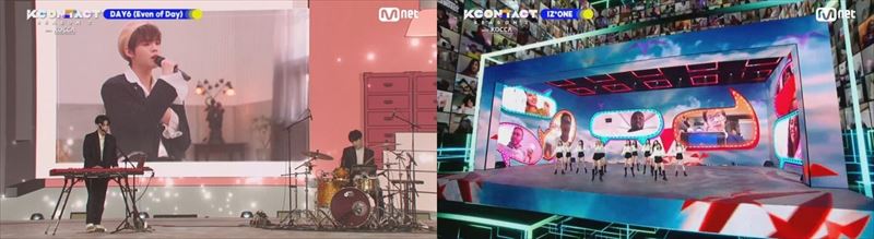 『KCON:TACT season 2』でしか見られないオンラインコラボレーションステージとファンとアーティストが一緒に飾るファンフィーチャリングステージ。 左)DAY6(Even of Day)とONF ヒョジン、 右) IZ*ONE
