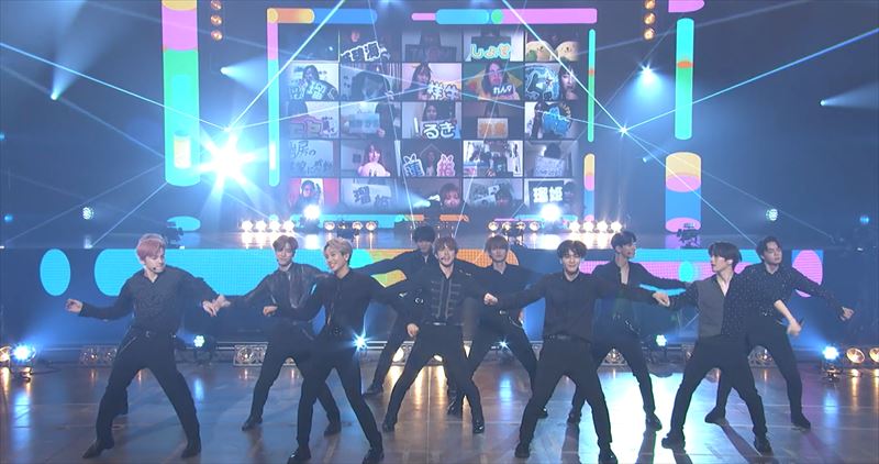 JO1は日本から参加。「OH-EH-OH」、「GO」ですばらしいパフォーマンスを披露したJO1は、 世界中のファンが視聴しているだけに、 外国語で挨拶をして雰囲気を盛り上げた。 続く「So What」、「無限大(INFINITY)」では落ち着いたカル群舞が視線を釘付けに。最後の曲「My Friends」では世界のファンの直筆メッセージを舞台の背景に使い、 世界中のファンたちに感謝の舞台をプレゼントした。