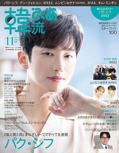 11月号の表紙と巻頭を飾るのは、 「まなざし一つですべてを表現する」と称賛される俳優パク・シフ。 「王女の男」以来9年ぶりに出演した時代劇「風と雲と雨」について熱く語ってくれている。 撮りおろしグラビアに加え、 彼が出演した主な過去の作品までたっぷりと紹介し、 俳優パク・シフのすべてを伝える。