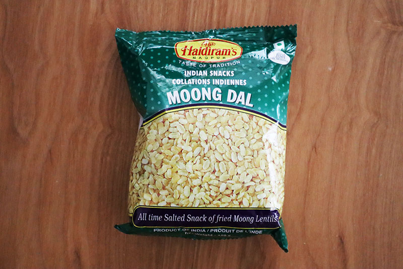 ムングダール(緑豆)の皮を剥き、半分に割ったものを素揚げにして塩味を付けただけのスナック。ハルディラム、というブランドのものが現地では有名です。インドに数あるお菓子の中で、僕はこれが一番好きです。スパイスが入っていないので豆の味をシンプルに楽しめます。ビールにもよく合います。食べ始めると止まらなくなる系のお菓子です。