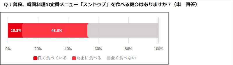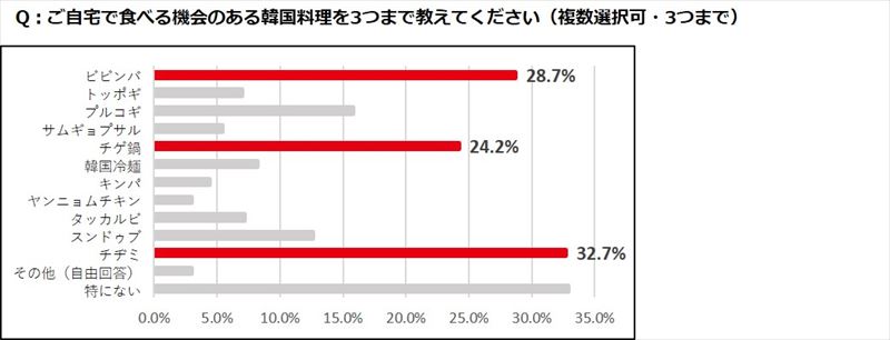 今回の調査では、「約2人に1人が在宅時間の増加に伴い、 韓流コンテンツに触れる機会が増加した」と回答。 また、 触れる機会が増加したと回答した人の、約79.5%の人が韓流コンテンツン触れることで、 韓国食品への興味・関心が高まったと回答し、第4次韓流ブームと呼ばれる、 韓国ドラマやK-POPなどの韓流人気の高まりが、 韓国グルメにも大きく影響を及ぼしていることが明らかになった。