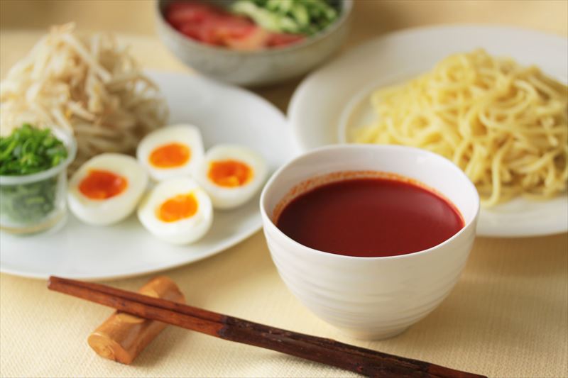 4.麺は好みの固さにゆでて、 流水であらい、 器に盛り付ける 。
