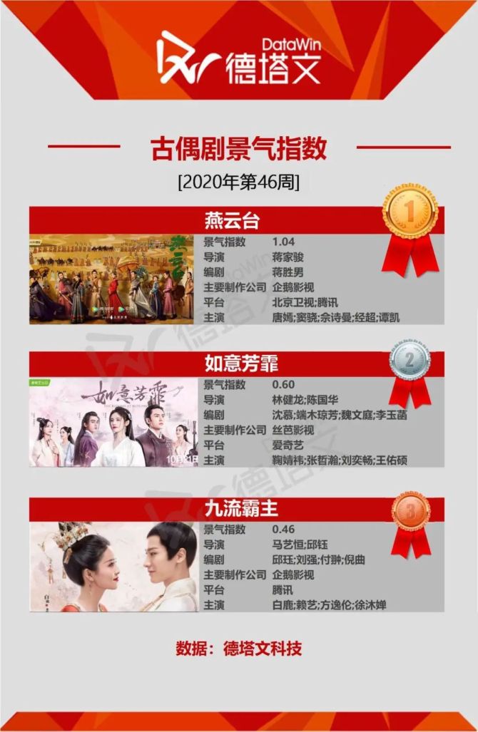 中国で市場分析を展開する德塔文科技による影視観察(datawinfilmtv)データより、2020年第46週(11.08-11.14)のドラマデイリー景気指数TOP10にランキングしたドラマを、ピックアップ!
