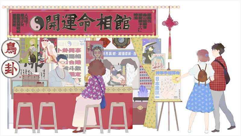 台灣漫画家左萱がオリジナル描き下ろした「占い屋台」