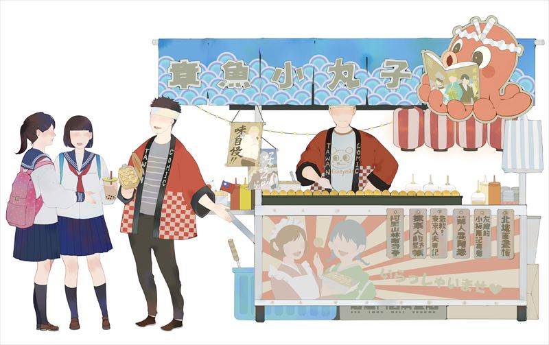 台灣漫画家左萱がオリジナル描き下ろした「たこ焼き屋台」