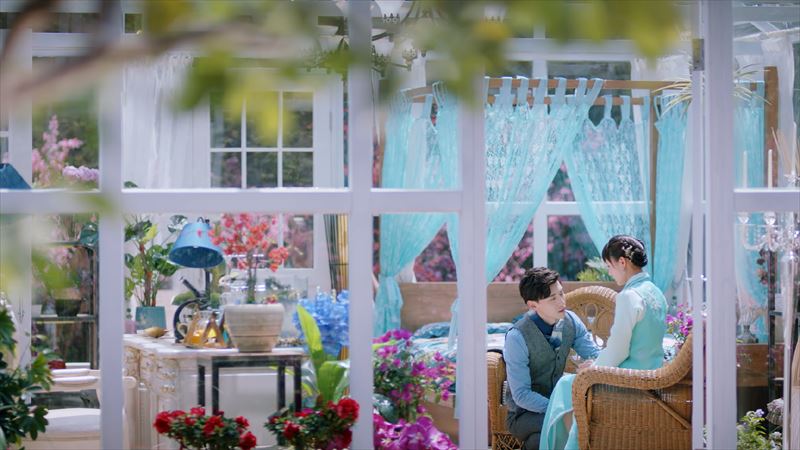 この秘密の花園”は朗月軒が様々なお花を育てているだけでなく、温室が彼の居住空間になっているのもステキ。