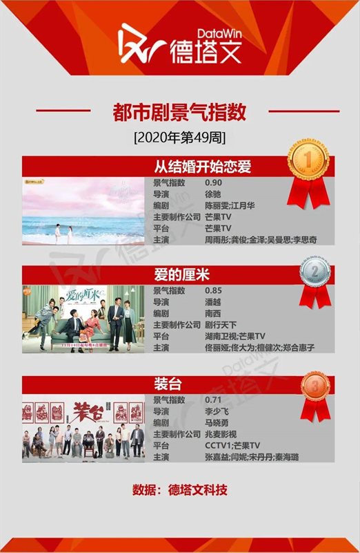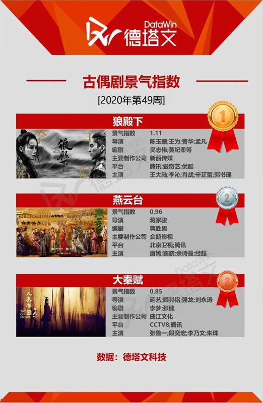 中国で市場分析を展開する德塔文科技による影視観察(datawinfilmtv)データより、2020年第49週(11.29-12.05)のドラマデイリー景気指数TOP10にランキングしたドラマを、ピックアップ!【その1】