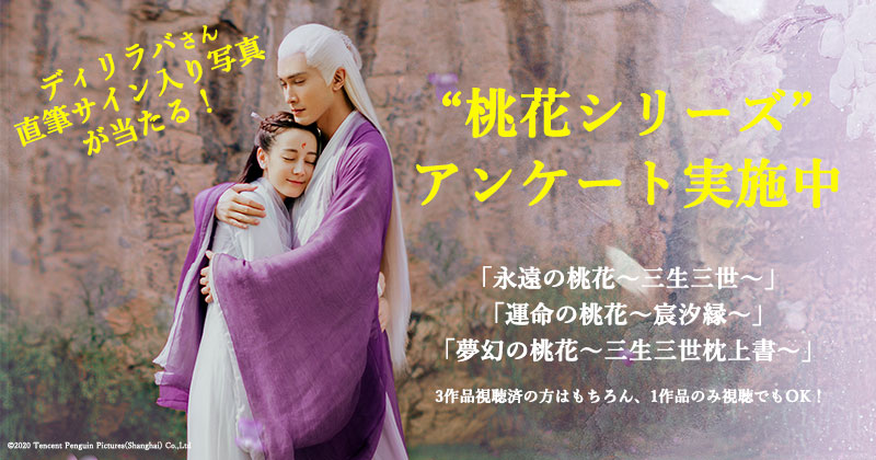 ”桃花シリーズ”最新作「夢幻の桃花~三生三世枕上書~」が3月3日(水)より、いよいよ日本でもDVDリリース開始!このリリースを記念し、Cinem@rtでは”桃花シリーズ”3作品(「永遠の桃花」「運命の桃花」「夢幻の桃花」)を特集予定!その特集内で、ファンの皆さまが思う”桃花シリーズ作品の魅力”を記事にさせていただきたく、今回アンケートを実施いたします。