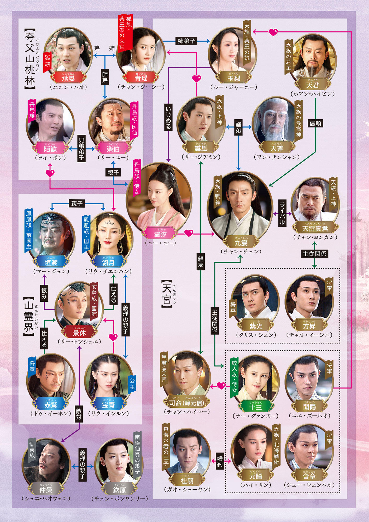 神様や仙人たちが住む天界と人間界を行き来しながら進行する宿命のロマンスと魔物との戦いは葛藤と波乱に満ちたドラマティックな展開。「永遠の桃花〜三生三世〜」のスタッフが手がけた、あの感動がよみがえる神話ファンタジー!