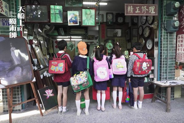 ローズさん:このカバン、昔の台湾の小学生が使っていたランドセルなんです!真ん中の女の子二人が背負っているのは今でも使われている形ですが、男の子たちが背負っているのは当時を感じる形です。私も小学校の時に似たようなのを使っていたので懐かしくって! 左から二番目の男の子が持っている緑色の水筒、あれも時代を感じますね。昔よく見たなぁ(笑)。